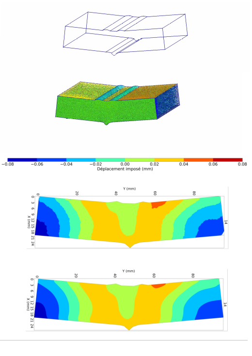 Afin d’annuler les effets asymétriques liés à la découpe, les déformations des deux demi-pièces sont moyennées sur une même grille qui correspond aux nœuds de la surface du maillage.